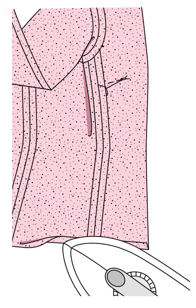 Сколоти і зшити бокові зрізи лицьовим боком до лицьового боку, сумістивши поперечні мітки на рівні талії.