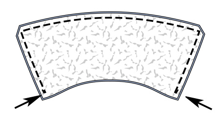 Деталі коміра скласти лицьовими боками і зшити зовнішні зрізи, почавши/закінчивши строчку точно біля лінії шва вшивання коміра. Припуски шва зрізати близько до строчки, на кутах – навскіс.