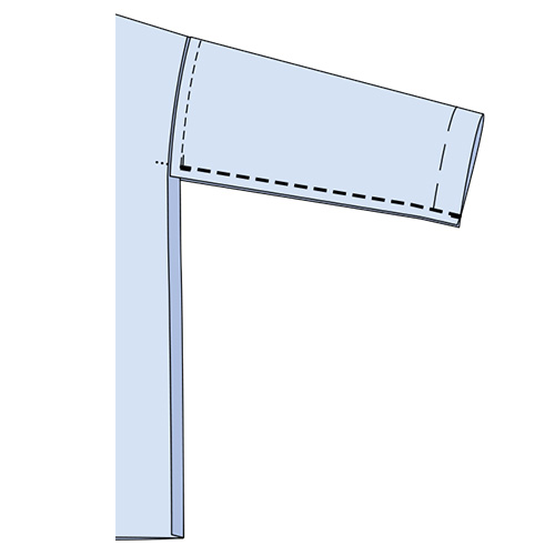 Припуск переду у другому куті надсікти аналогічно. У кінці вставку пришити до другого поздовжнього зрізу переду. Припуски шва обметати разом і запрасувати на перед.