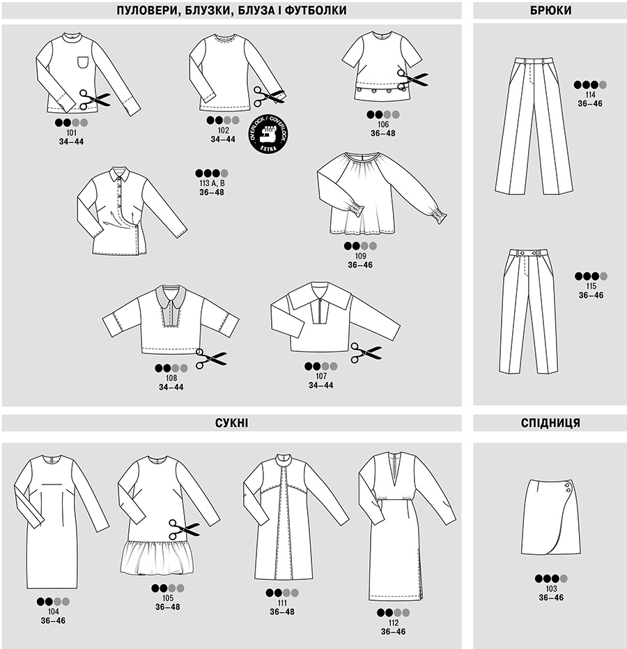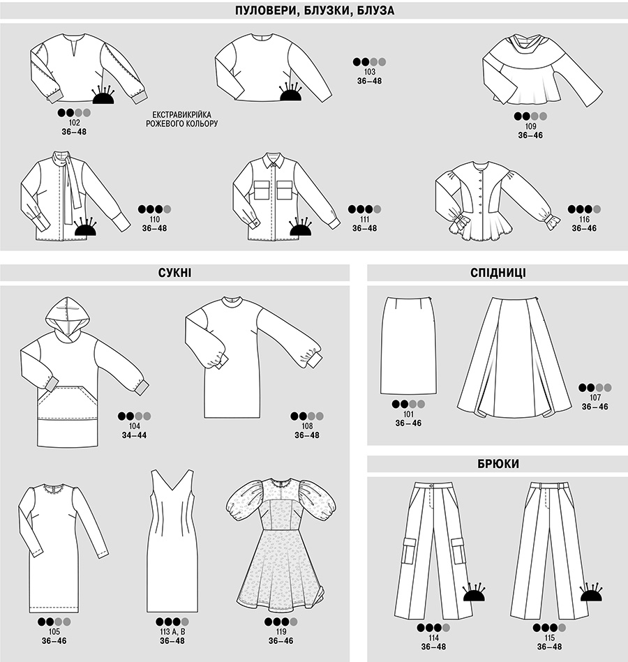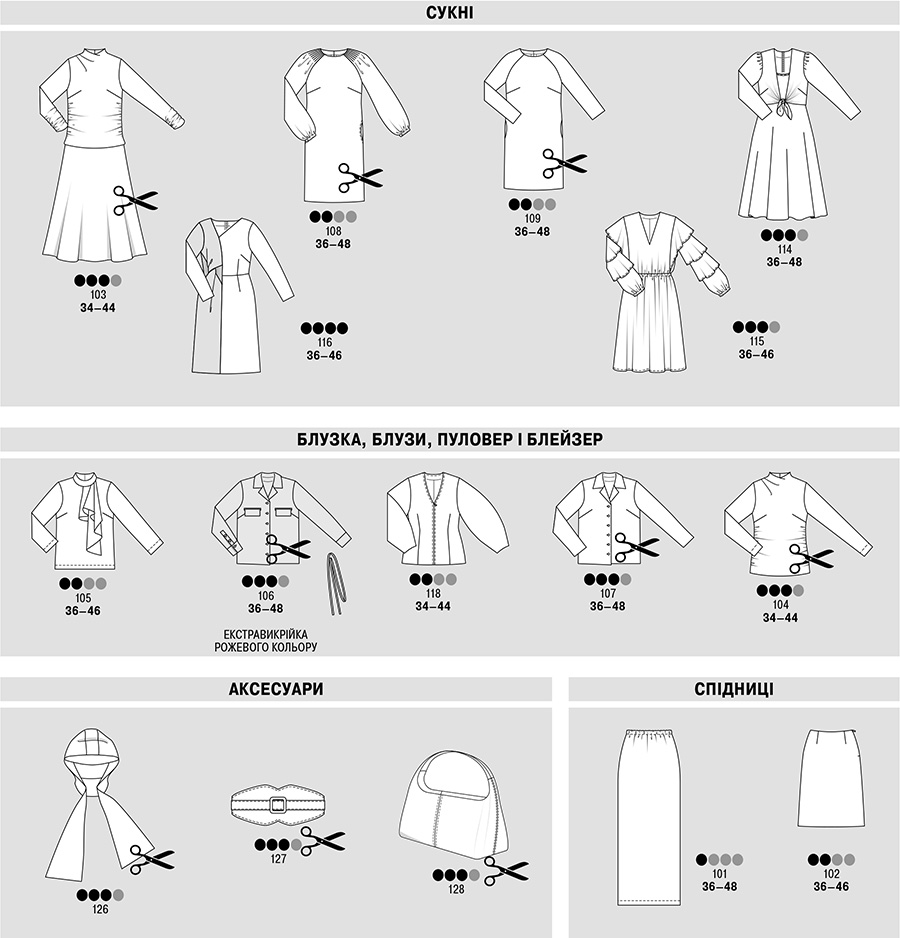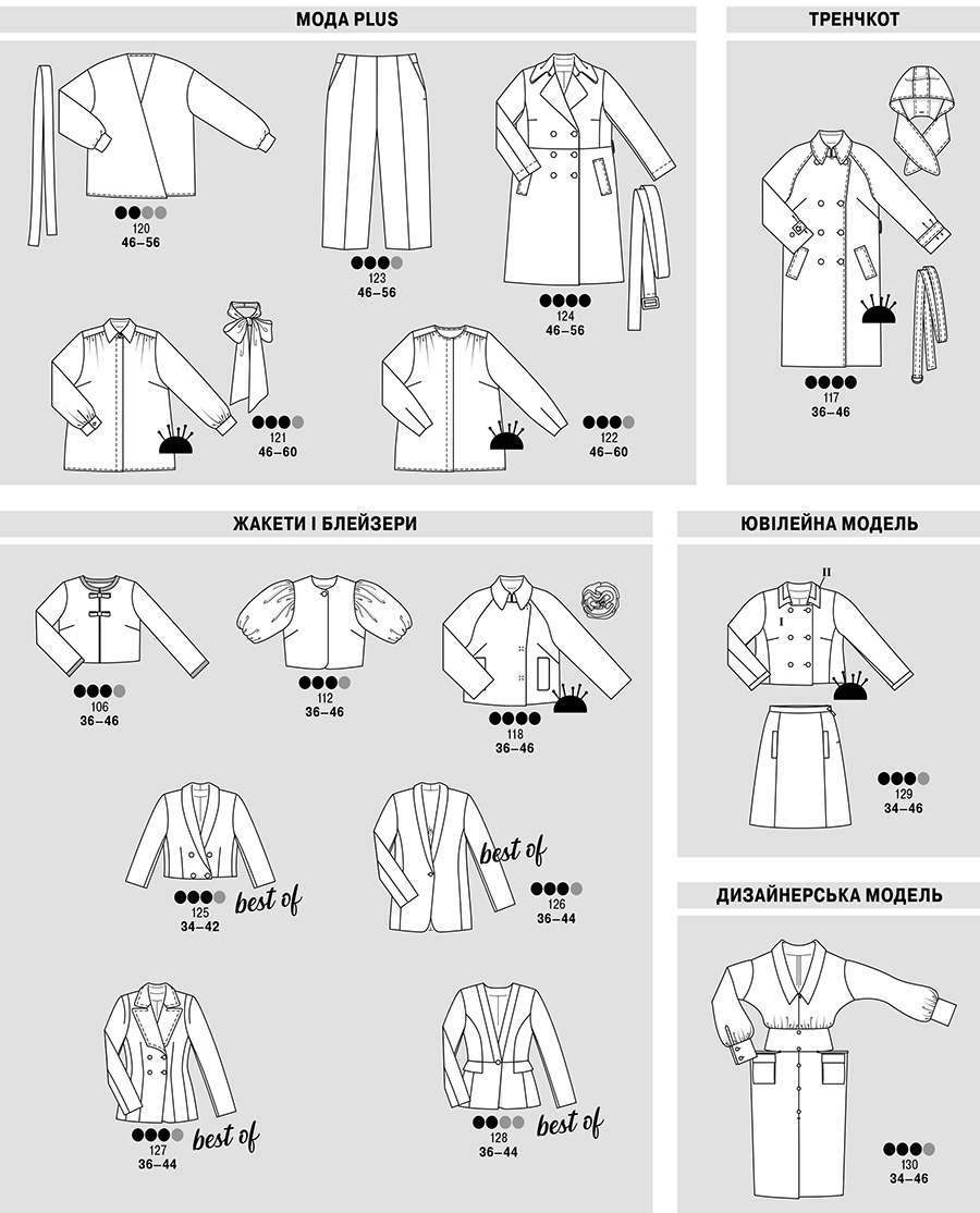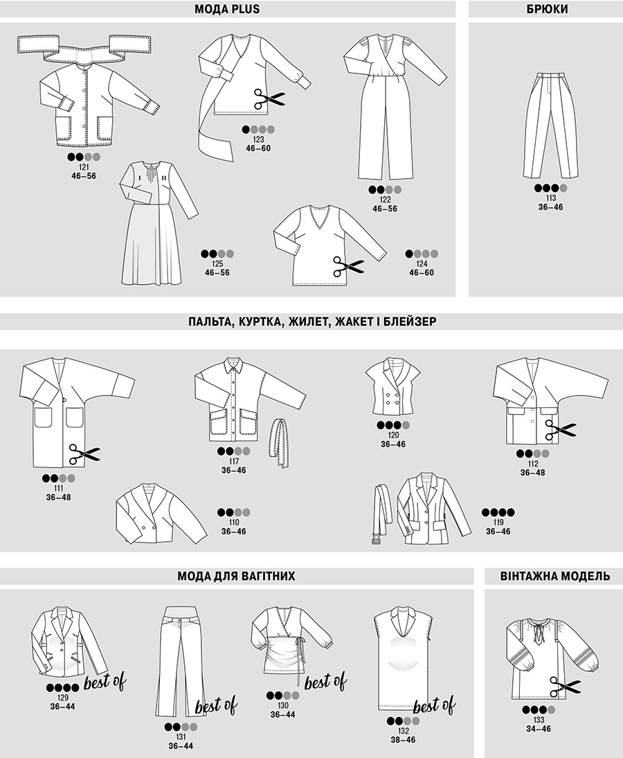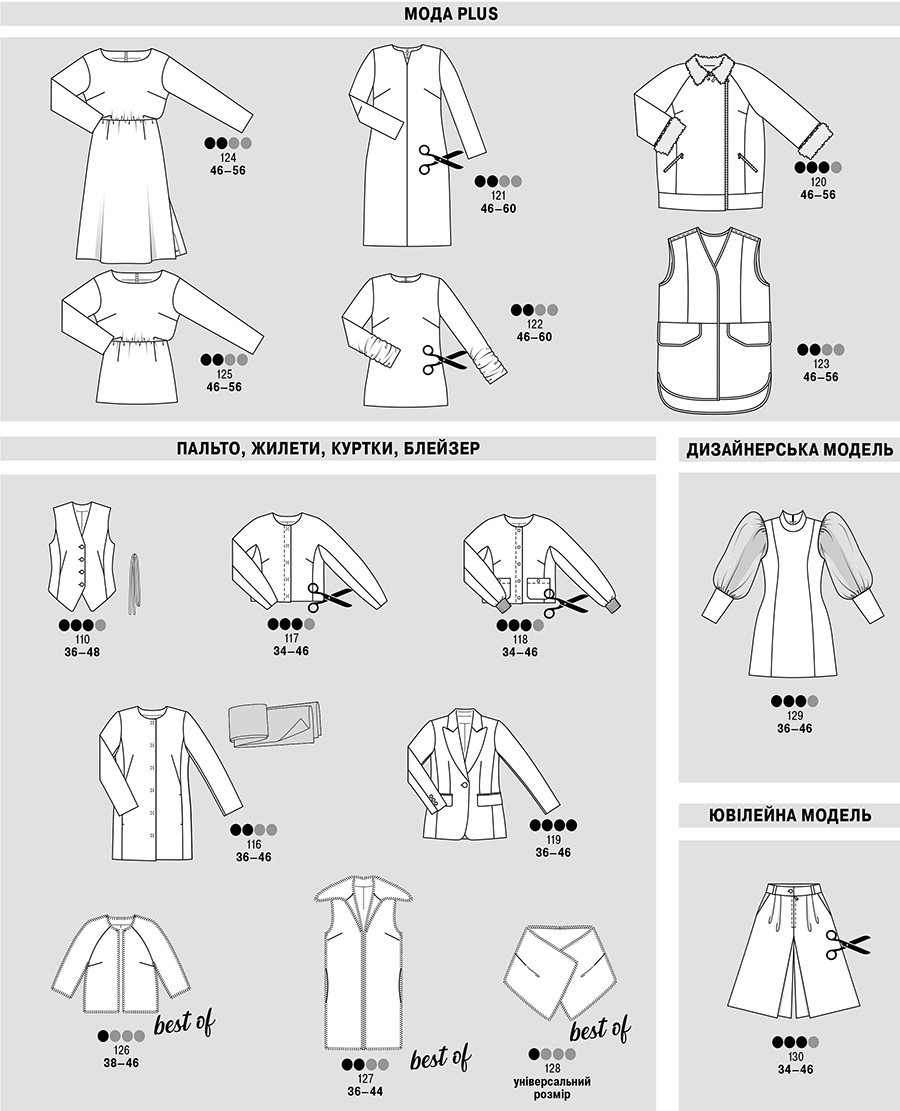 Для того, щоб процес вибору бажаної викрійки був максимально зручним і швидким, у цьому матеріалі ми зібрали усі технічні малюнки моделей Burda за 2025 рік. Гольничком (ножицями) на технічних малюнках позначені моделі з ілюстрованим курсом із пошиття.