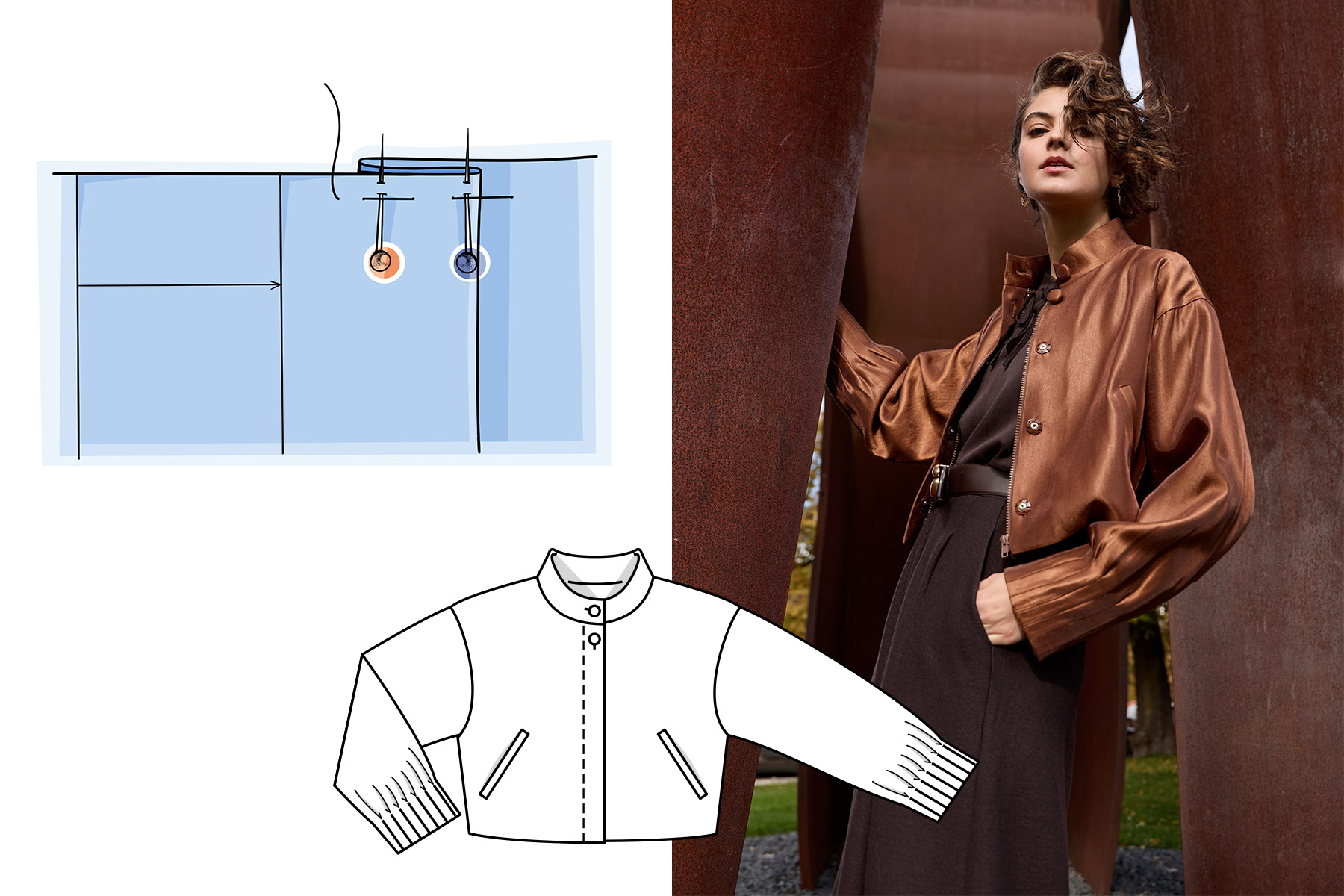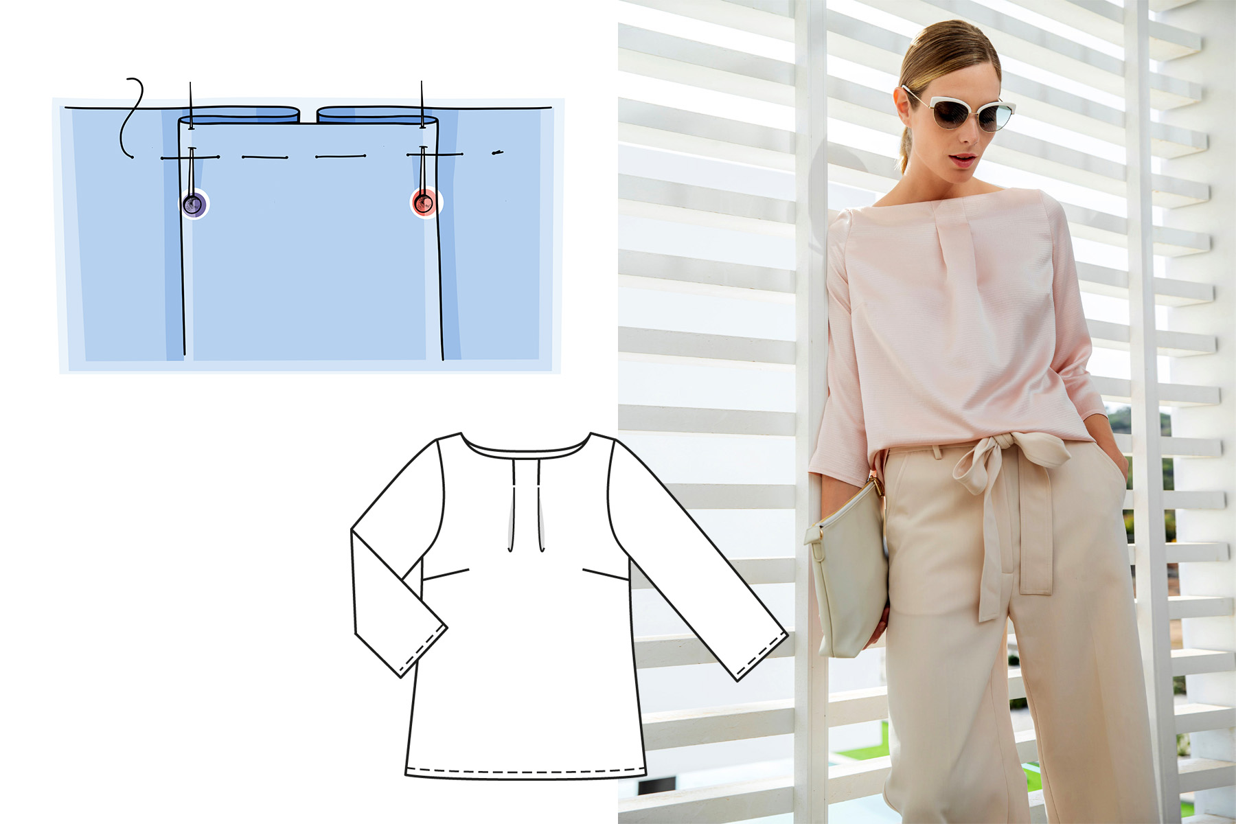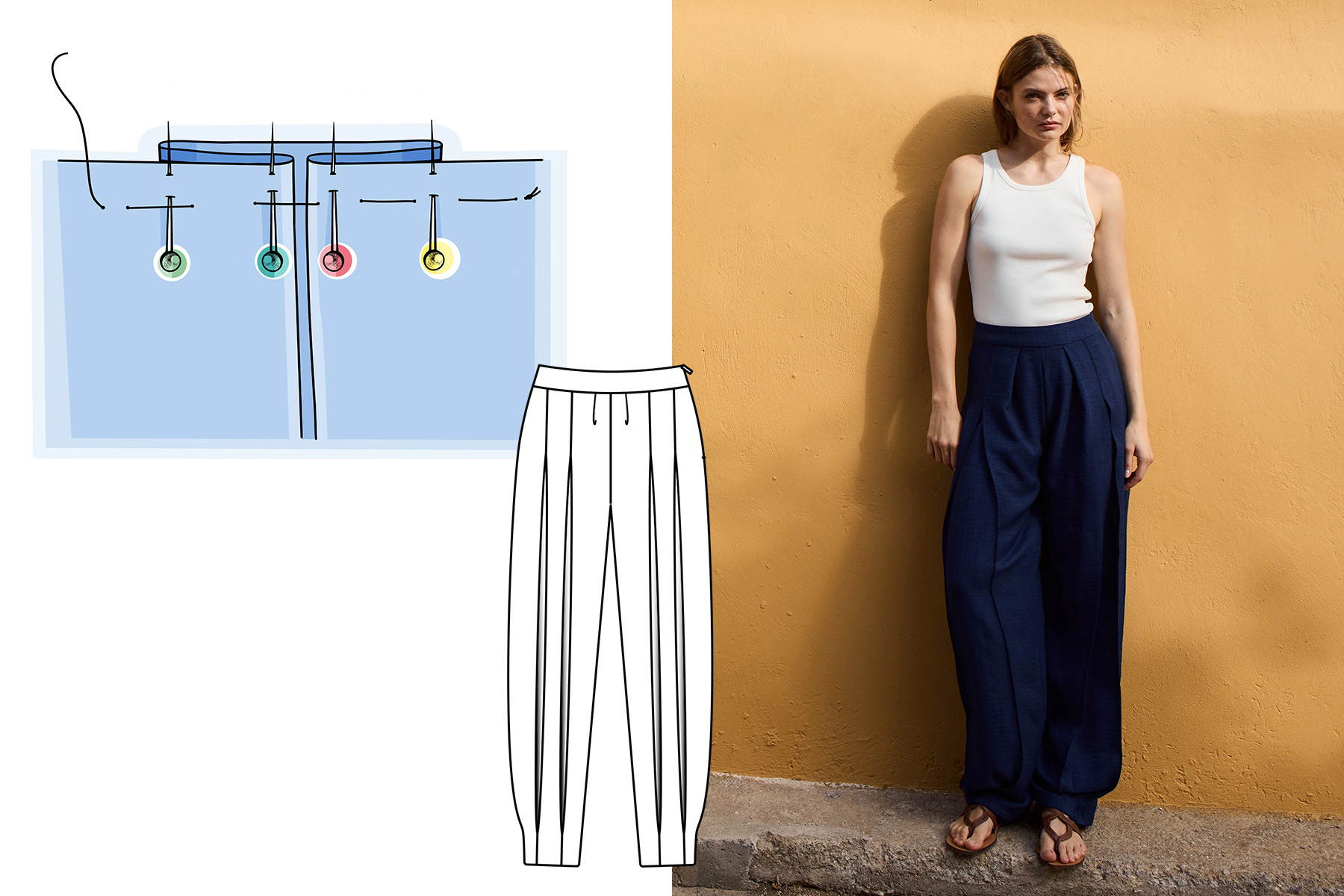 ПОРАДА: для ліній згинів і суміщення використовуйте зметувальні нитки різних кольорів — так лінії буде легко розрізнити.