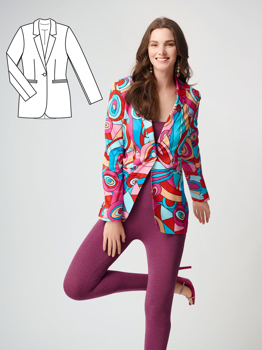 Синій, чорний, темно-сірий? Не в цьому разі! Блейзер із видовженими лацканами і бездоганними кишенями в рамку поєднує в собі велике кравецьке мистецтво з яскравим принтом у стилі ретро і додає свіжості у повсякдення.