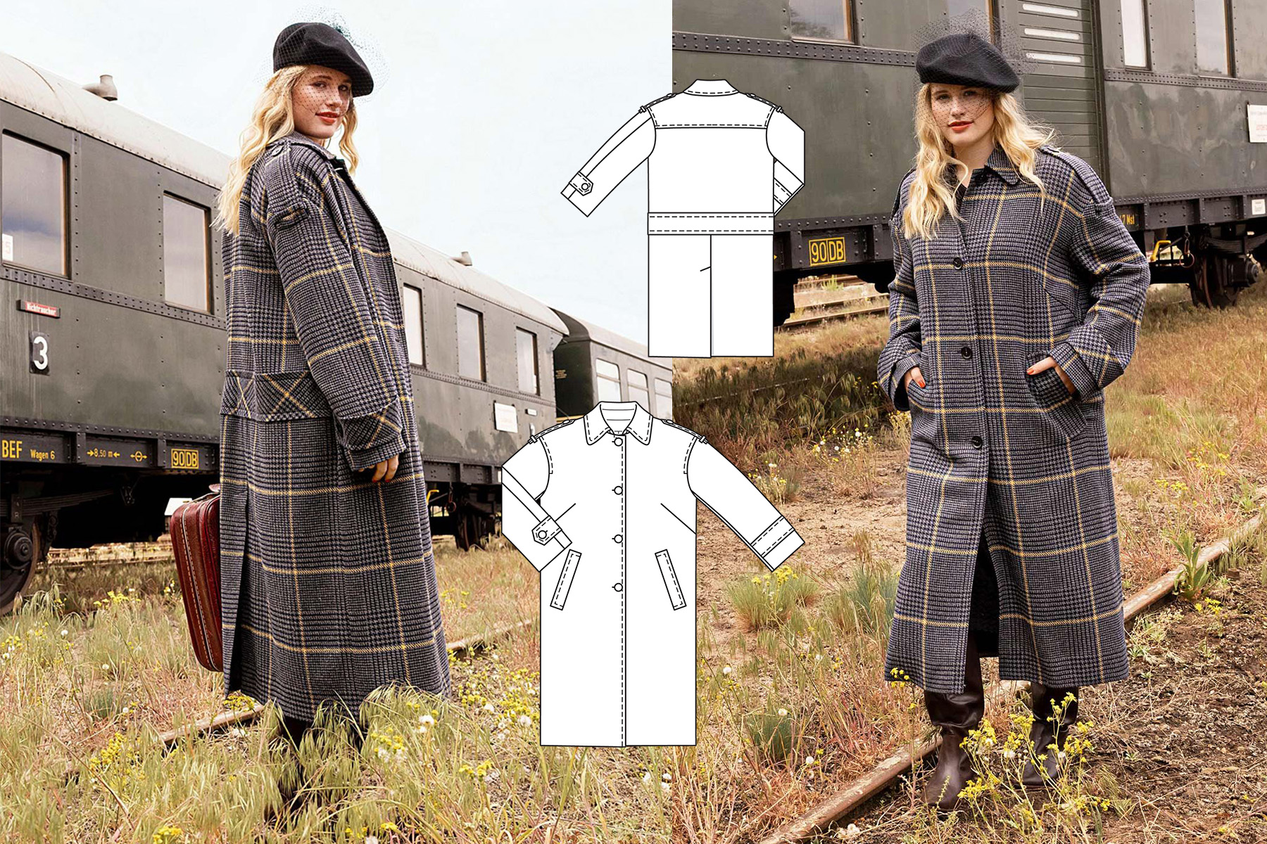 Фасон тренчкота і класична тканина в клітинку гленчек - як вдало вони доповнюють один одного! Особливо стильний вигляд мають характерні деталі: погони та пати на рукавах. З ними перегукується пришивний пояс на спинці, який створює занижену лінію талії.