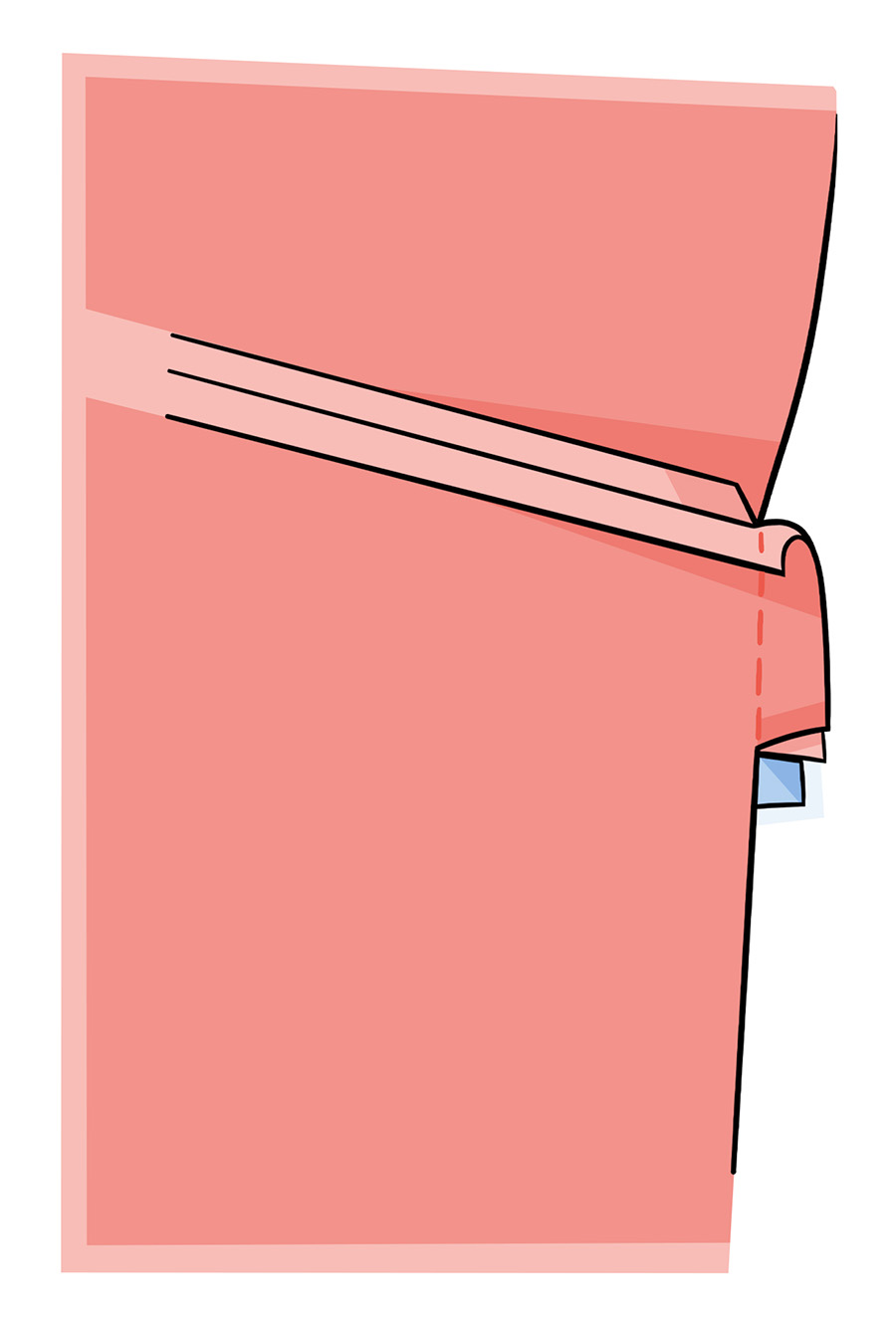 Маленьку дірочку по низу підкладки, яка утворилася, можна припрасувати або зашити вручну.