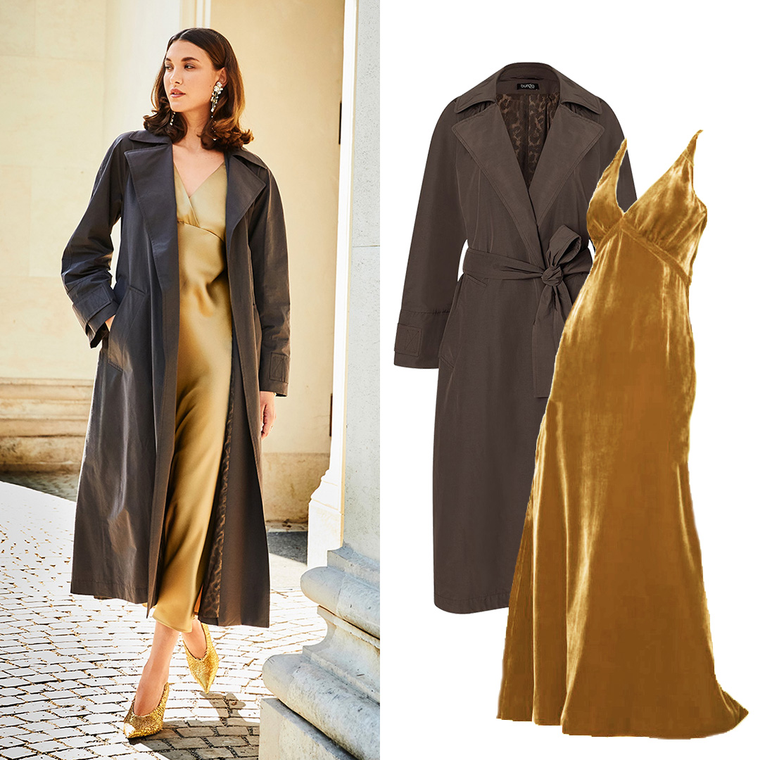 Неперевершена класика: довгий тренчкот представлений тут у сучасному варіанті з видовженими лацканами, широкими планками рукавів, патами XL і принтованою підкладкою. Ця модель така елегантна, що цілком може стати доповненням навіть до вечірньої сукні з глибоким декольте.