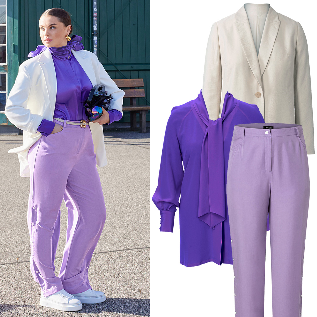 Ці штани мають щось спільне з повсякденними штанами на кнопках, які носили Sporty Spice & Co. у 90-х роках. Але завдяки справжньому, а не еластичному, поясу та боковим кишеням штани мають досить повсякденний вигляд. Елегантний блейзер завжди допоможе вам справити гідне враження. Модель із загостреними лацканами застібається на один ґудзик. У рельєфних швах пілочок передбачені кишені.