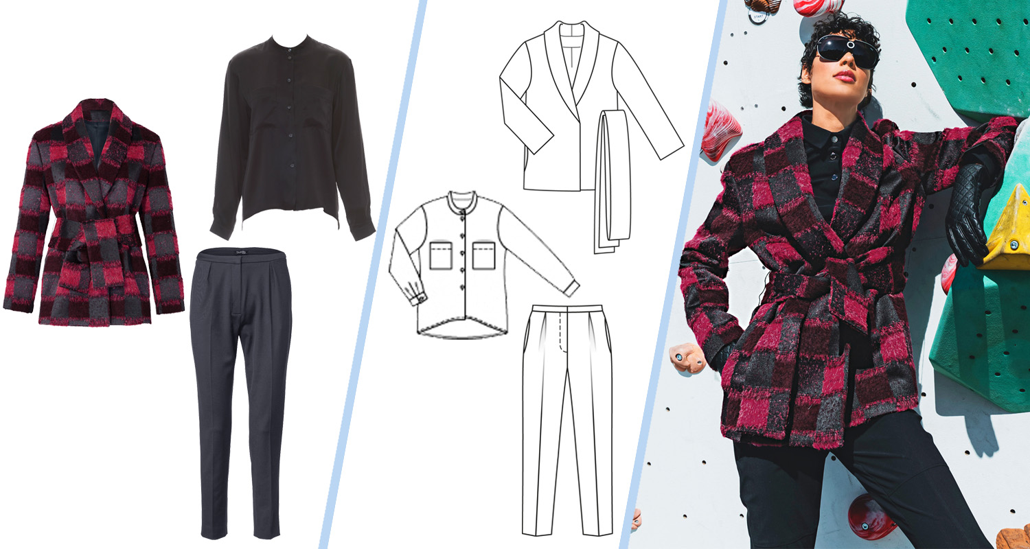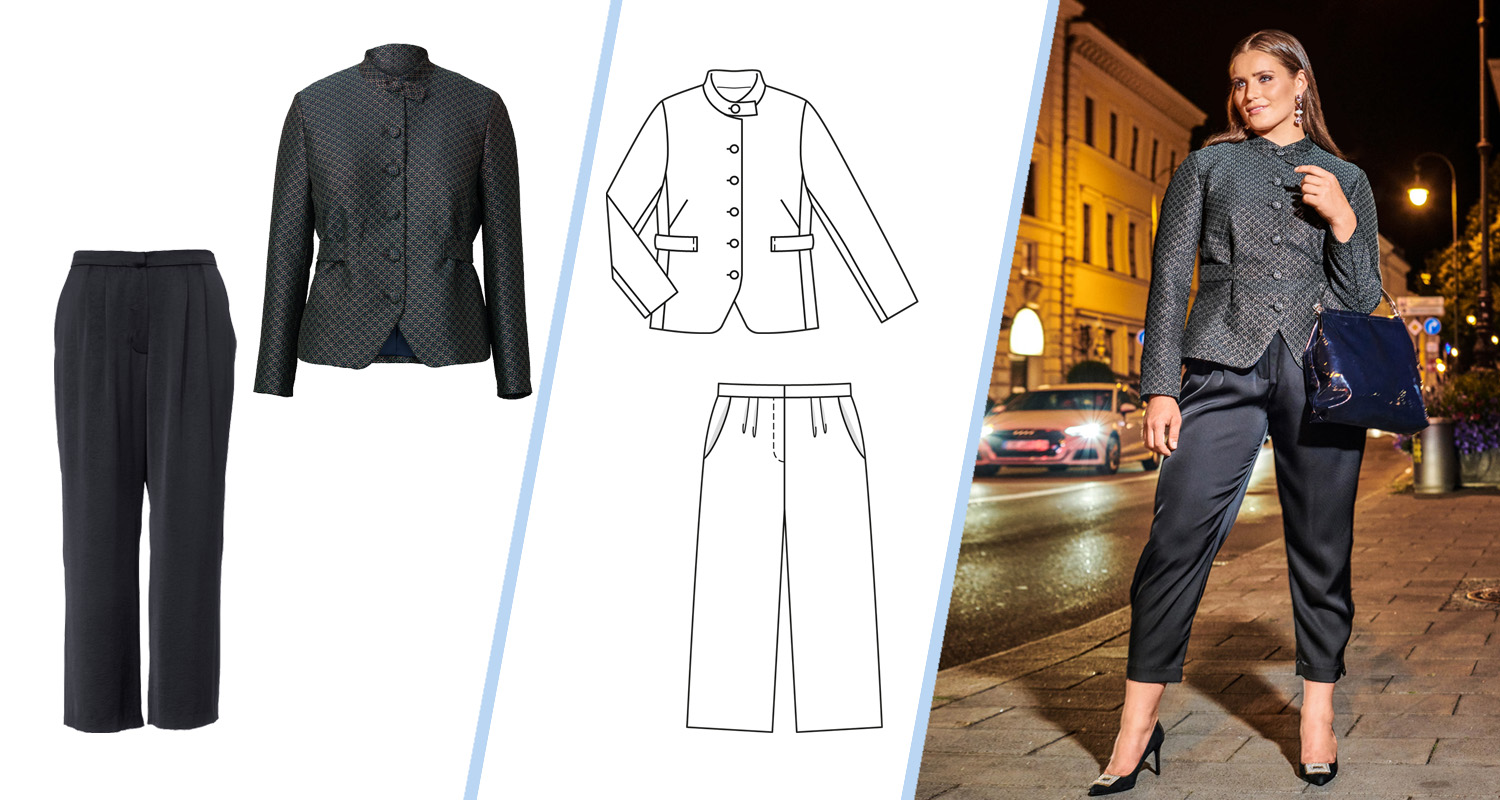 Жакет Burda 12/2022#105 B, сорочка Burda 4/2013#104 B, брюки Burda 8/2021#119