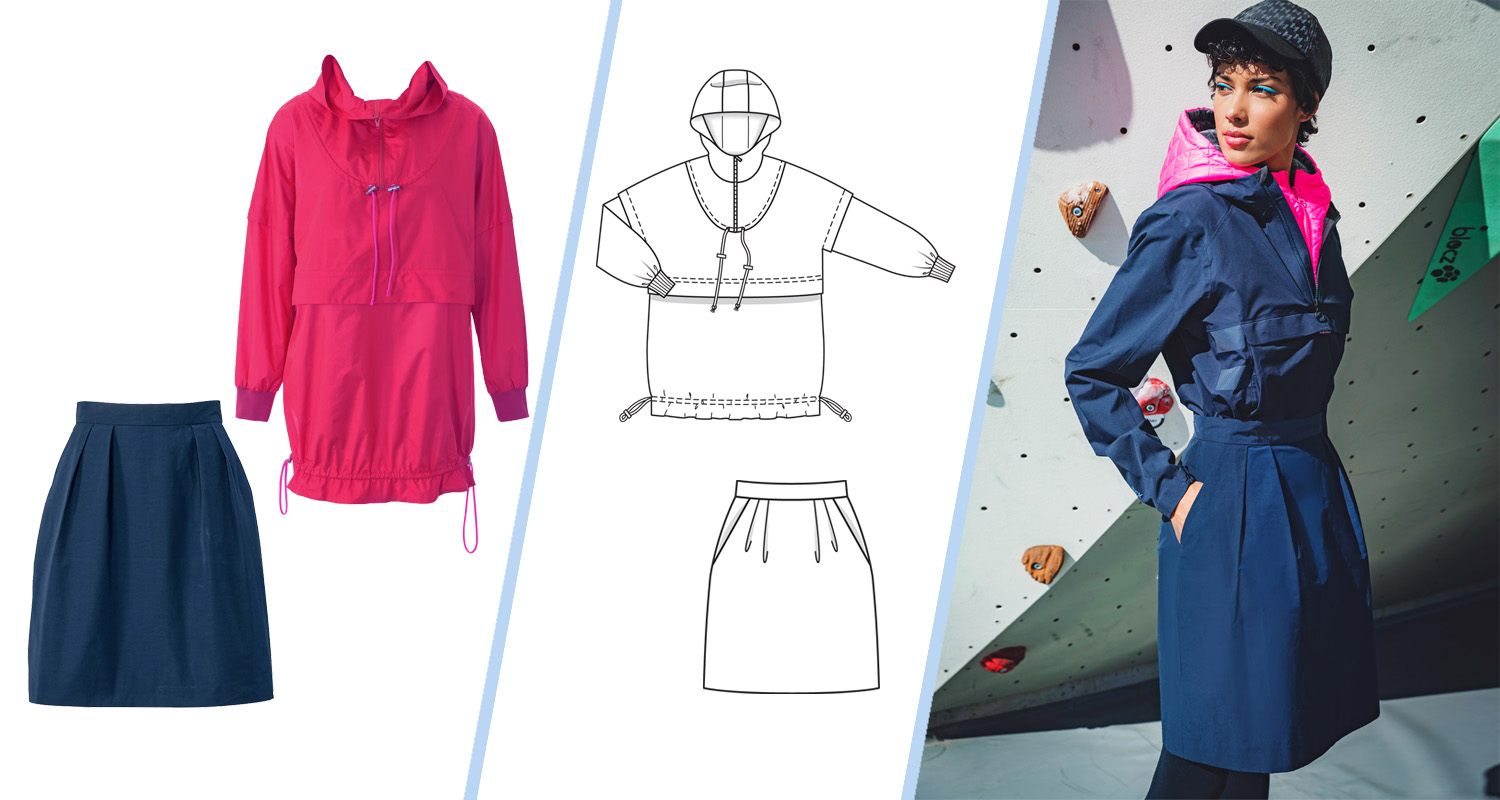 Спідниці зі складками в тренді у цьому сезоні – завдяки боковим кишенями із відрізними бочками і поліестеровій тканині, яка тримає форму спідниці. Легким рухом руки анорак, що вдягається через голову, може стати наполовину коротшим! Адже його нижня частина пристібається до верхньої за допомогою блискавок. Анорак можна вкоротити до талії, просто відстібнувши нижню частину.