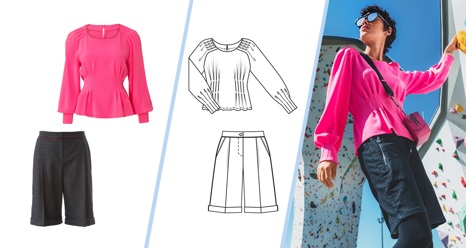 Блузка Burda 12/2022#112 B, бермуди Burda 8/2014#111
