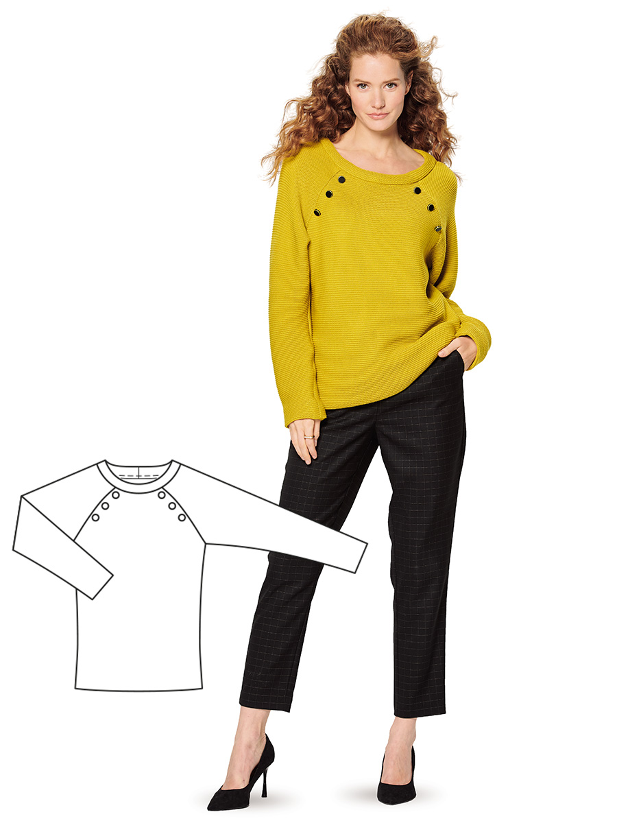 Пуловер Burda 1/2021#112 A, штани Burda 1/2021#105 A