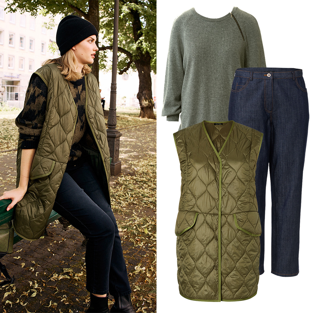 Легкий утеплений жилет приваблює чіткими швами, застібкою на кнопки, кишенями з клапанами та ідеально підходить для функціонального багатошарового образу. Декоративна окантовка косими бейками прикрашає всі зрізи.