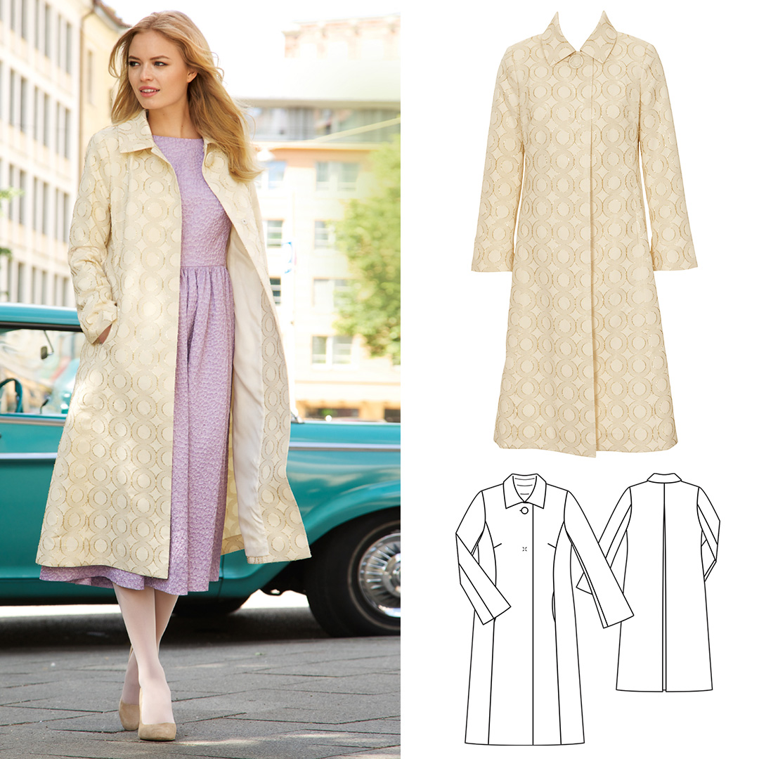 Коли симпатична і модна річ відносно проста у пошитті, це вдвічі приємно. Не випадково наше плюшеве пальто з великими накладними кишенями, відкладним коміром і широким поясом на спинці і досі актуальне – через 60 років.