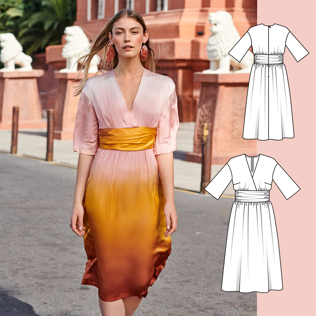 Ефект запаху, імітація пояса камербанда і колір деграде: у цієї супержіночної сукні багато модних деталей і саме тому вона є однією з найпопулярніших моделей з червневого випуску Burda.