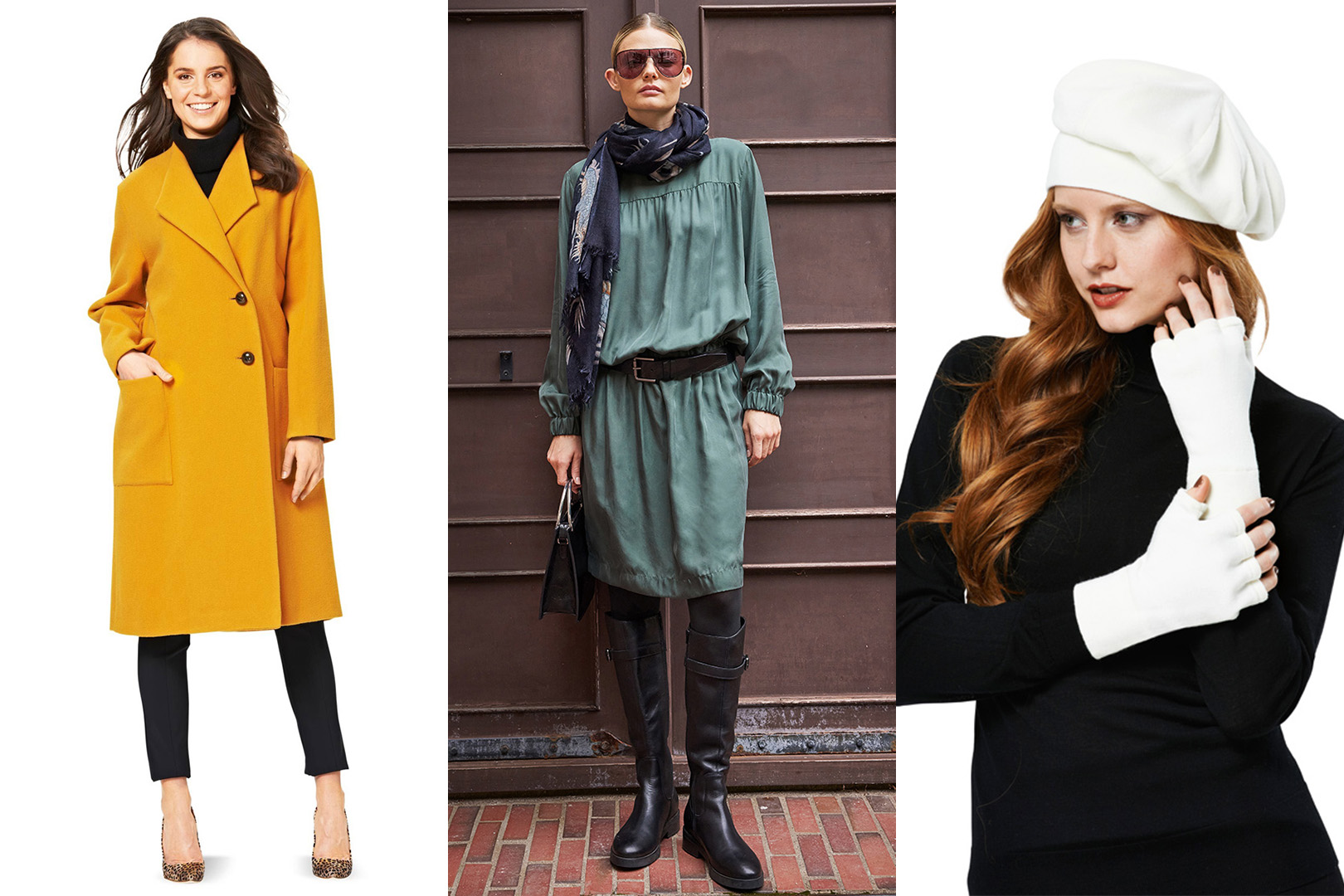 Сукня Burda 12/2025#104, пальто Каталог Burda 2/2015# 6736 A, берет Каталог Burda 2/2013#7037 B, чоботи KONSTANTIN STARKE, ремінь VICTORIA BECKHAM, сумка JOOP!, браслет CHRIST