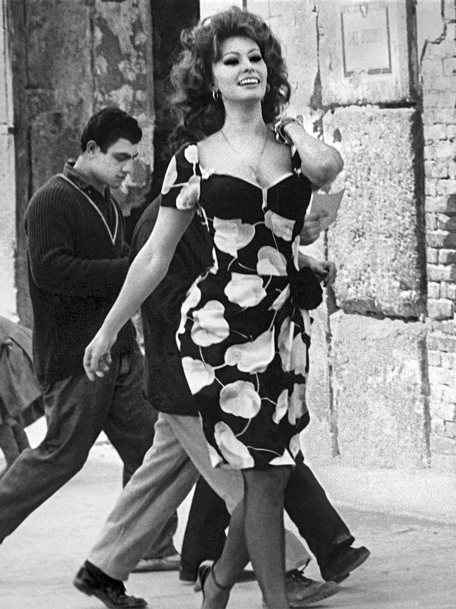 Софі Лорен, яка народилася в 1934 році в Римі, поєднує гламур, чуттєвість та італійський дух як ніхто інший. З появою разом із Марчелло Мастроянні у фільмі «Шлюб по-італійськи» (1964) вона закріпила свій статус незмінної ікони моди. Але не лише її ролі, а й її стиль увійшов в історію: жіночність, яка є впевненою та спокусливою водночас.