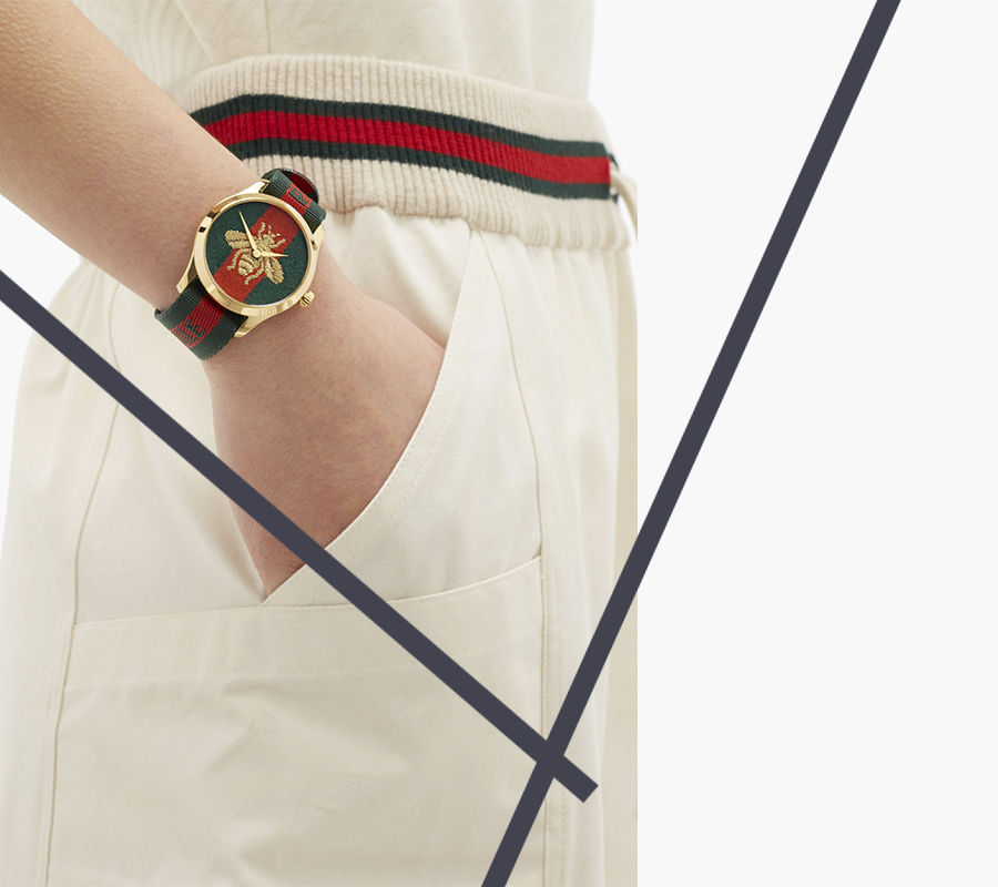 Логоманія проникла і в тему аксесуарів. Годинник із вишивкою на циферблаті має артистичний вигляд.