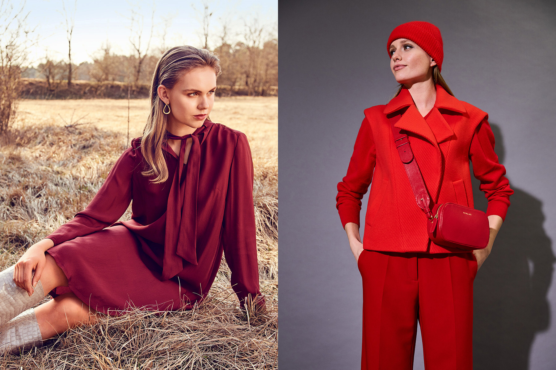 Серед яскравих акцентів виділяється червоний — від густого винного до класичного яскравого. Один такий елемент — пальто, светр чи сумка — здатен оживити будь-який образ.