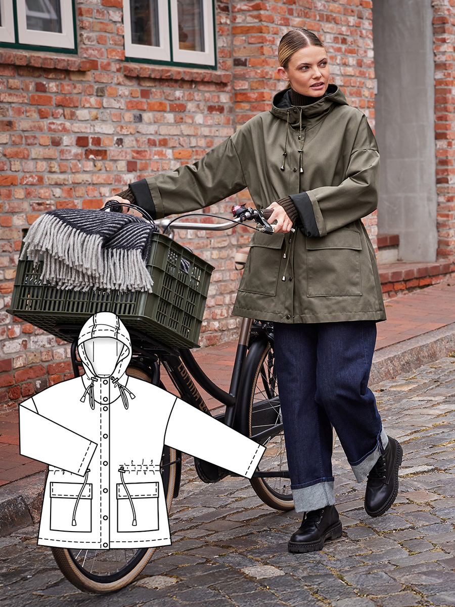 Міський шик поєднується з функціональністю: парка модного А-силуету приваблює капюшоном, кулісками і кишенями XL – це стильний і зручний супутник для прогулянок містом у дощову та вітряну погоду.