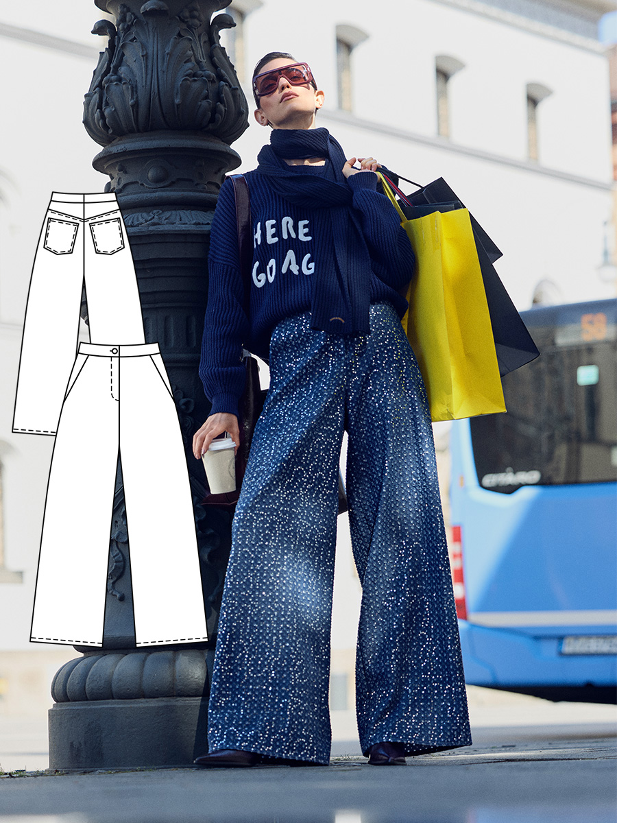 Повсякденний гламур: коли денім поєднується з блиском, створюється образ із характером. Широка форма джинсів створює об’єм, пайєтки розставляють блискучі акценти – стильно, сміливо, урбаністично.