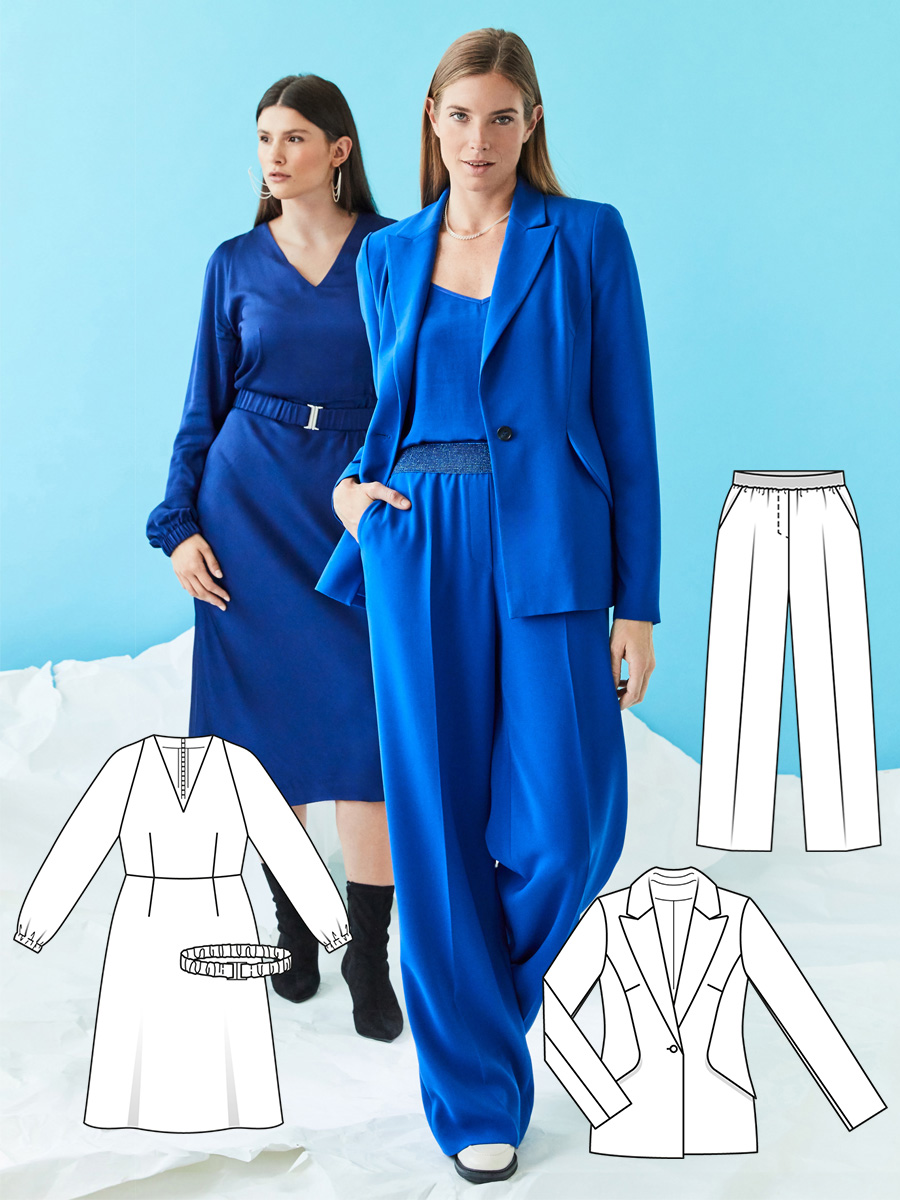 Для тих, хто шиє самостійно, синій колір — вдалий вибір для базових і трендових речей. Сукні простого крою, жакети, класичні пальта або костюми в синіх тонах залишатимуться актуальними не один сезон. Завдяки універсальності кольору такі моделі, пошиті за викрійками Burda, легко адаптувати під різні стилі та ситуації.