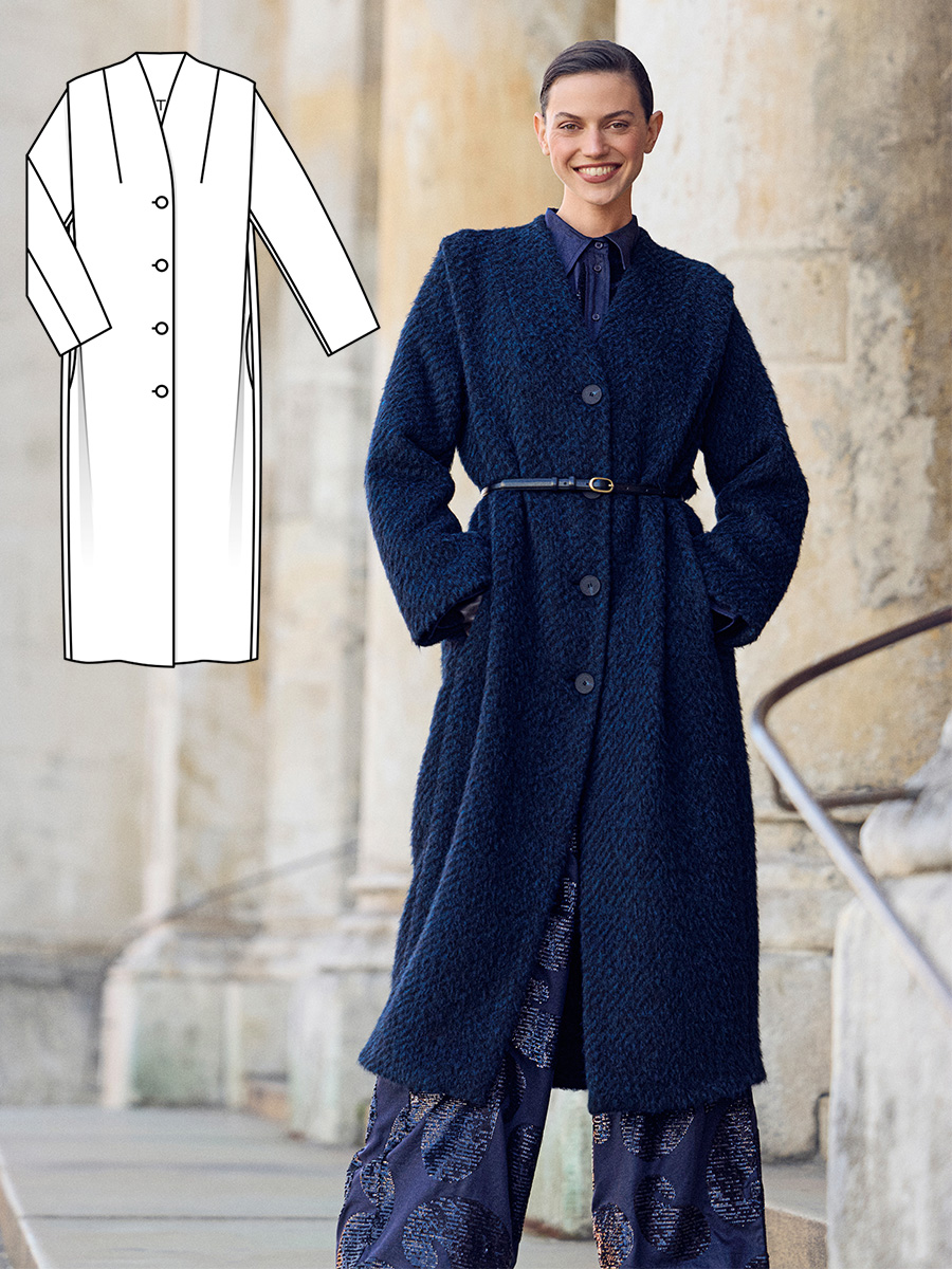 Пальто актуальної довжини, із сучасним силуетом і ворсованою текстурою шерстяної тканини поєднує комфорт із виразними лініями та ідеально підходить для стильних міських образів.