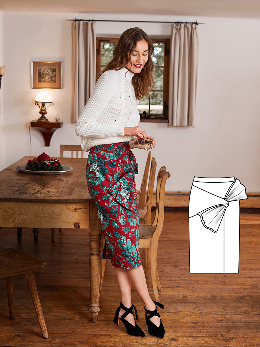 Що подарувати собі? Яскрава спідниця-олівець зі шліцею і великим ефектним бантом стане справжньою окрасою свята. Еластична тканина подбає про бездоганну посадку.