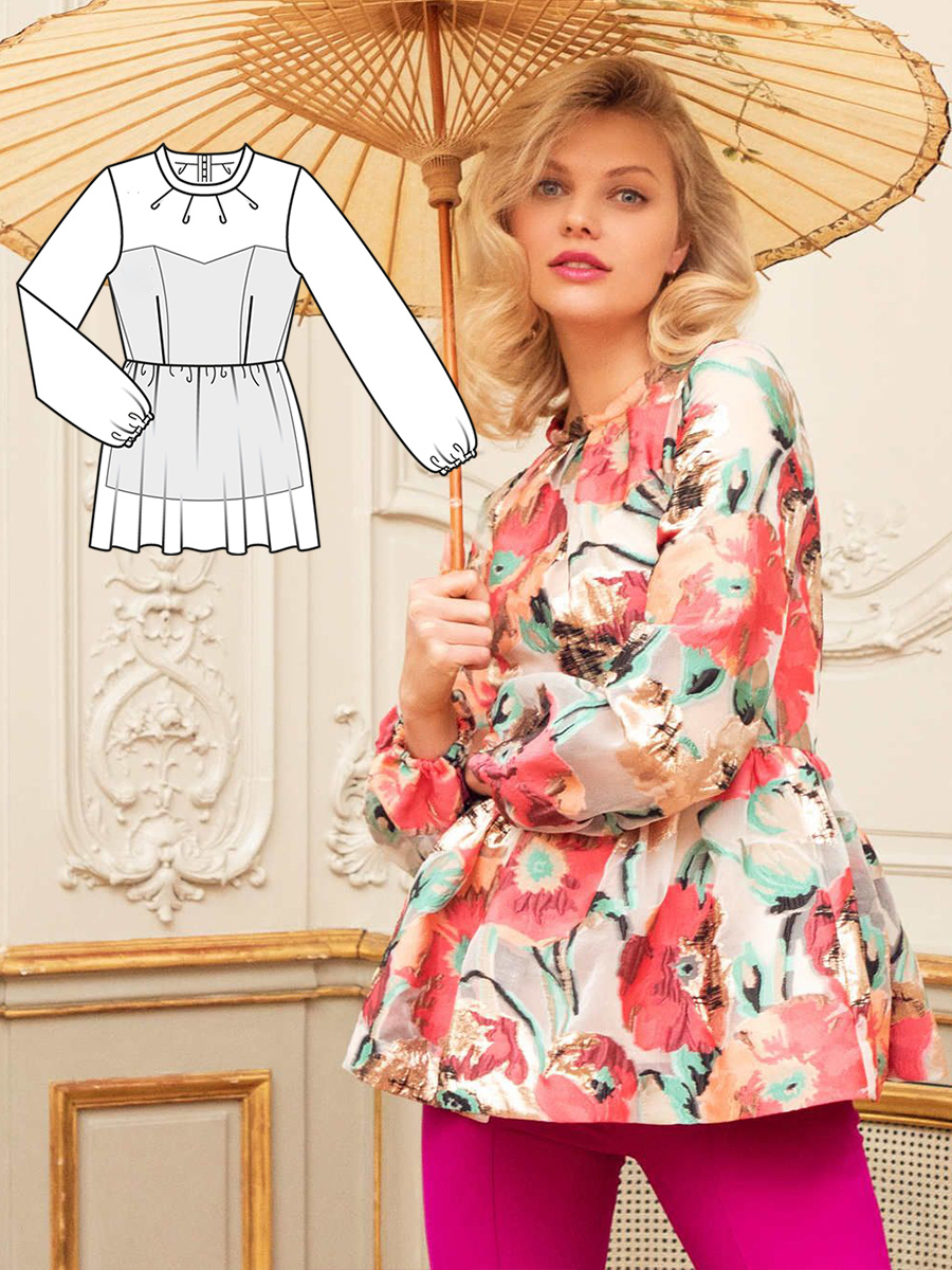 Деякі моделі внесуть до цього сезону щось нове: наприклад, асиметричний суцільнокроєний шарф, який вільно лежить навколо шиї. Якщо хочете додатково підкреслити незвичайну деталь, пошийте нашу блузку з однотонної тканини.