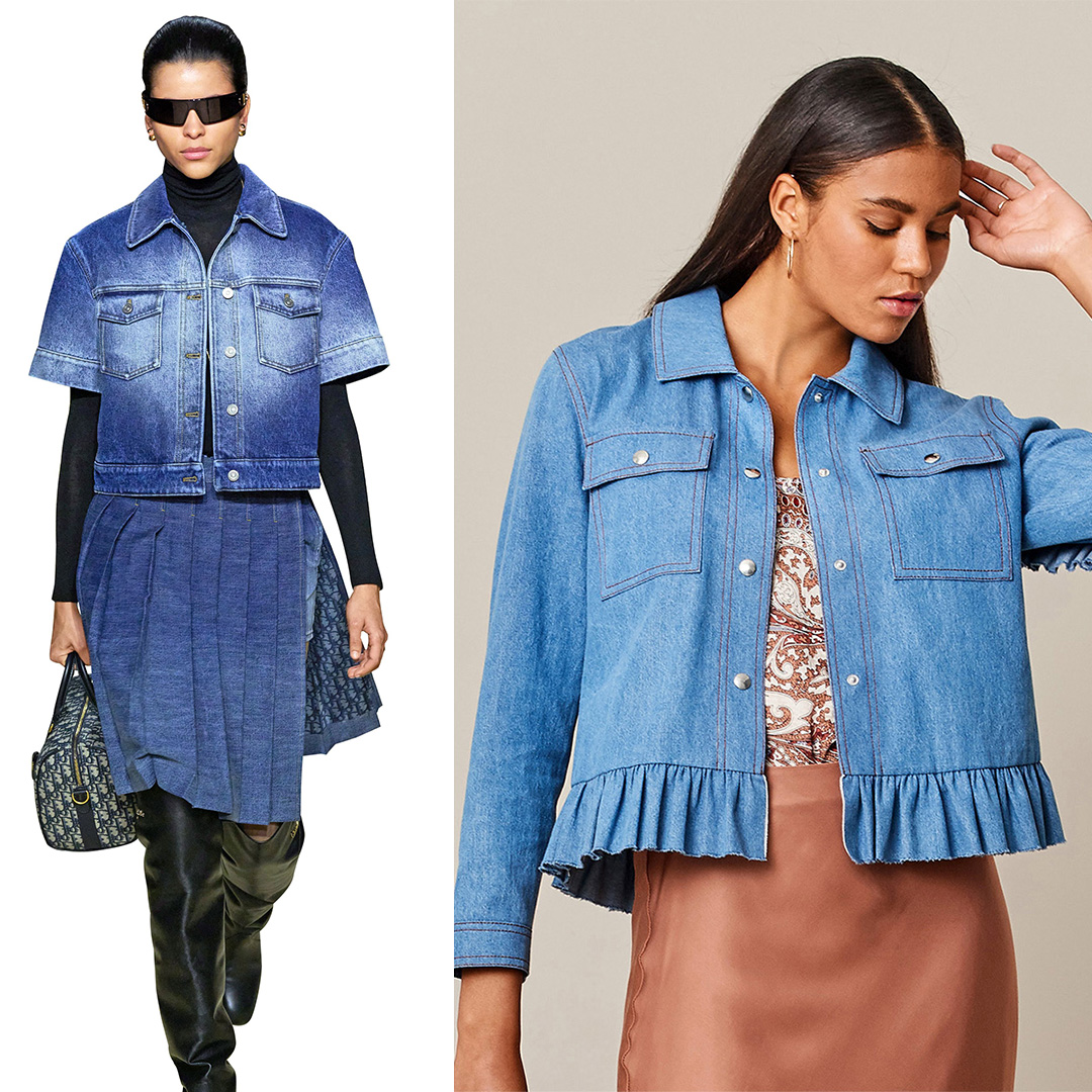 Ніколи ще джинсова куртка не була такою романтичною! Все завдяки оборкам по низу і вздовж рукавів. У такому виконанні модель ідеально підійде до витончених суконь і спідниць, коли для пальта ще досить тепло, а шкіряна куртка здається не зовсім доречною.