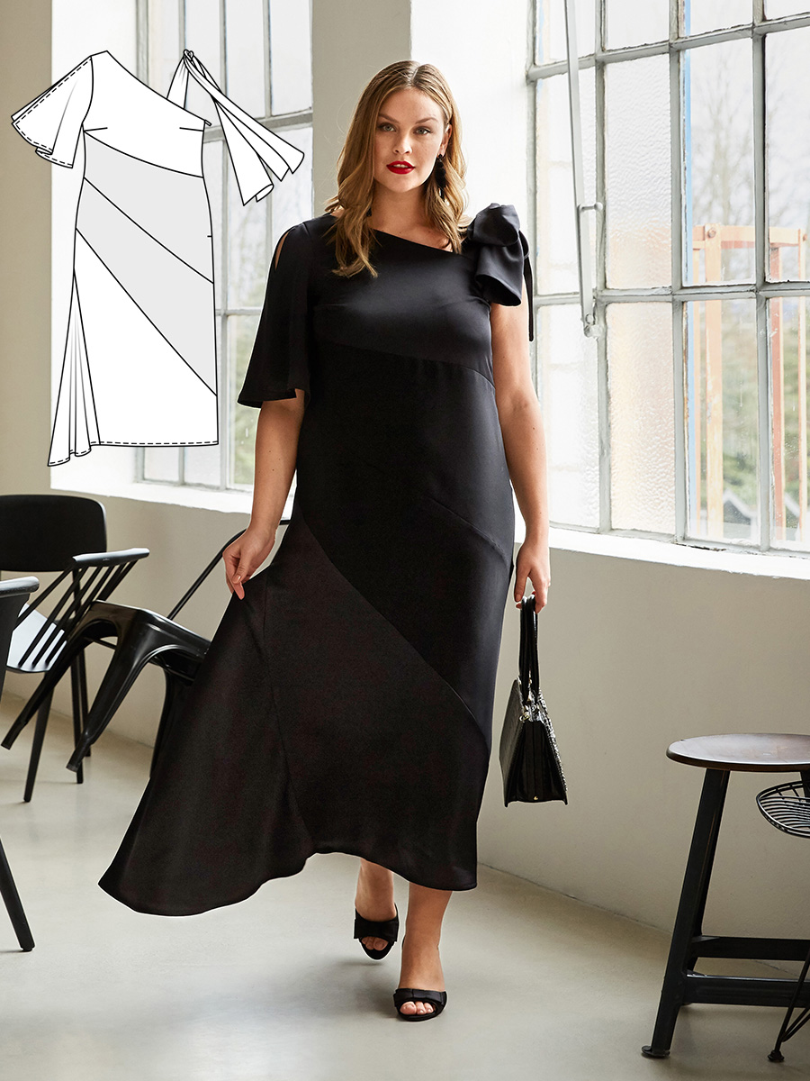 Часу обмаль, а потрібно пошити нарядну сукню? Не хвилюйтеся! У нас є відмінна модель — і красива, і проста у виконанні. Вона підійде практично всім жінкам завдяки розширеному донизу силуету.