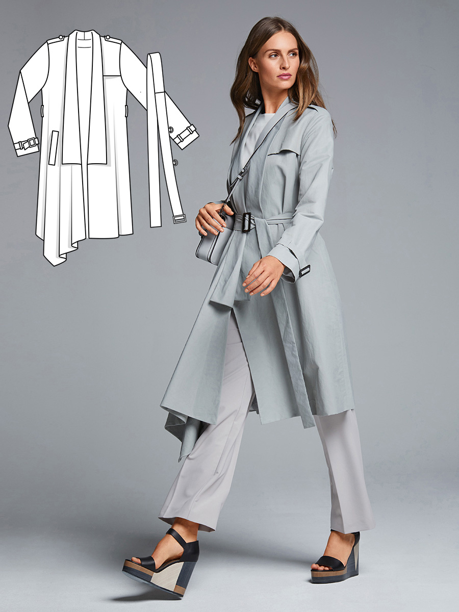 Пілочки, що драпіруються, асиметричний низ, довгий шалевий комір, вузькі рукави – сьогодні тренчокти все більше тяжіють до жіночності, але зберігають при цьому традиційні атрибути: погони, відлітні кокетки, хлястики на рукавах і, звичайно, ремінь.