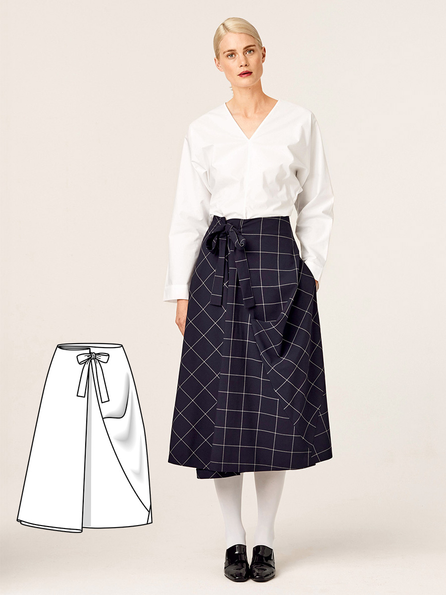 Родзинка цієї асиметричної спідниці міді – її незвичайний крій з ефектом запаху. Ще одна особливість – клітинка, яка завдяки витонченому крою цікаво змінює свій напрям.