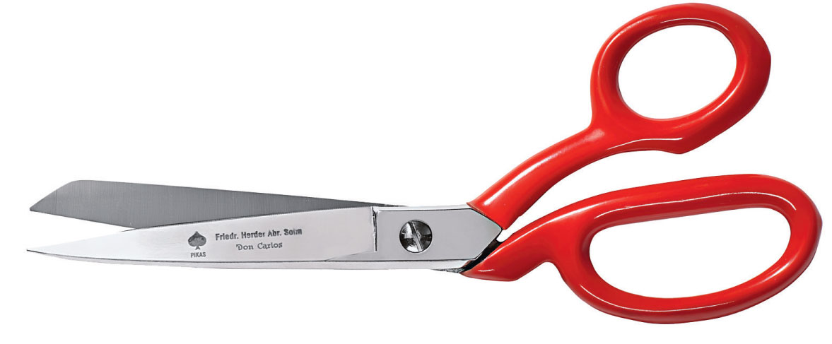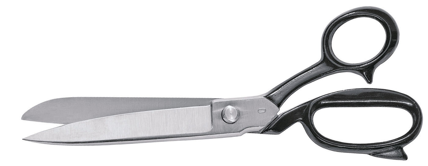 Розкрійні ножиці. Класична сталева модель розміром від 7 до 14, ідеальний середній розмір 10. Плюс спеціальної юстирувальної гайки те, що ви самостійно можете змінювати тиск лез. (Наприклад, від Solingen Stahl.)