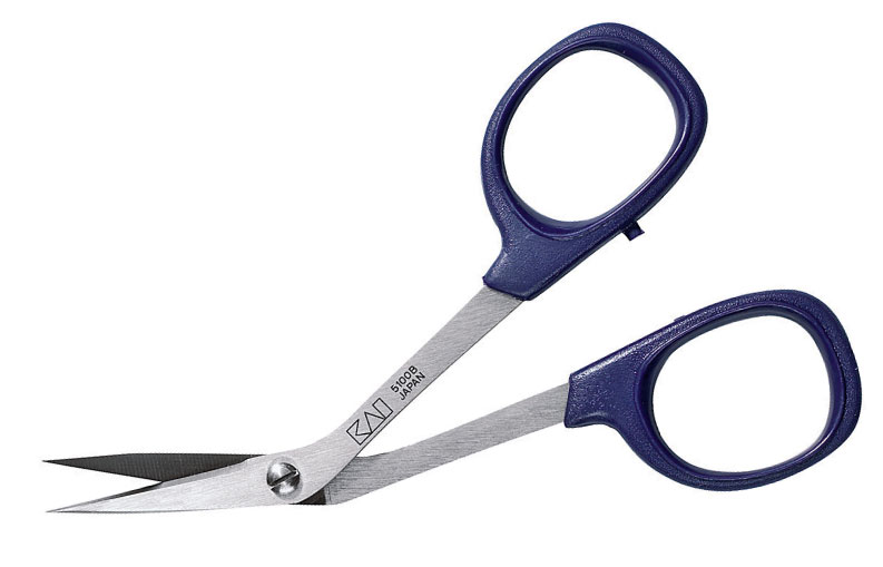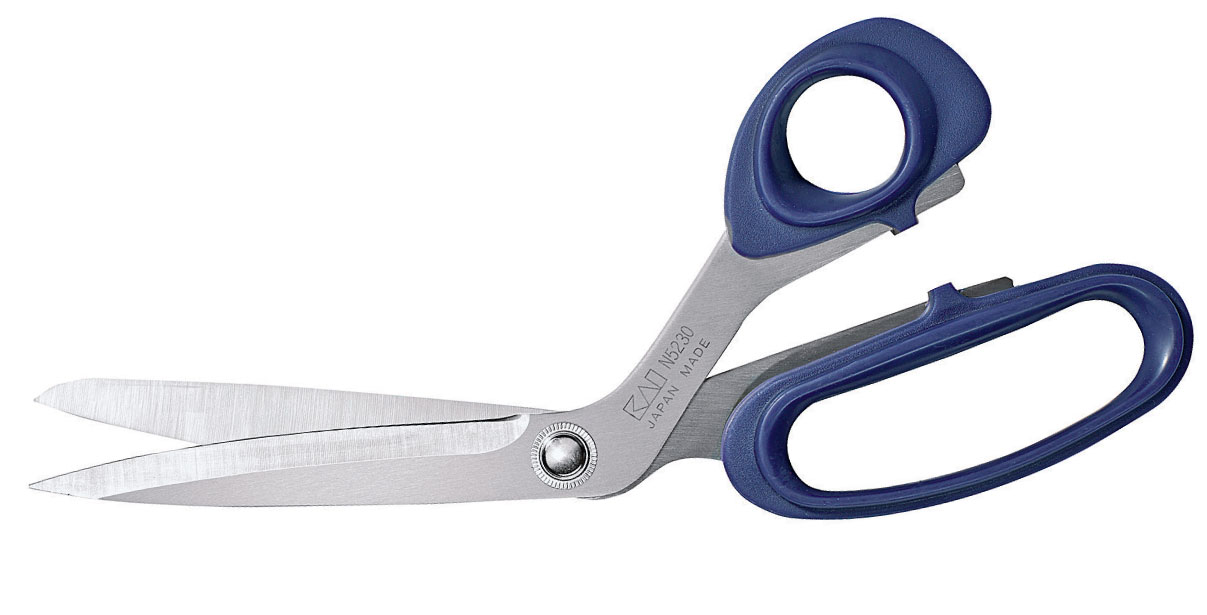Ножиці із зігнутими ручками. Вони ще зручніше закрійних: за рахунок більш низького положення лез тканина під час різання не піднімається. Плюс: ергономічні ручки комфортні для роботи.