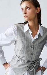 Цей блейзер завдовжки до стегон «росте» разом із вами: у рельєфні шви пілочок і спинки вшиті хлястики з півкільцями для регулювання ширини.