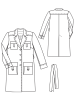 Довгий комір, низькі лацкани і тканина, що легко драпірується, візульно витягують силует. Пальто з двошовними рукавами і кишенями XL не має застібок, в талії його можна перехопити поясом з тієї ж тканини.