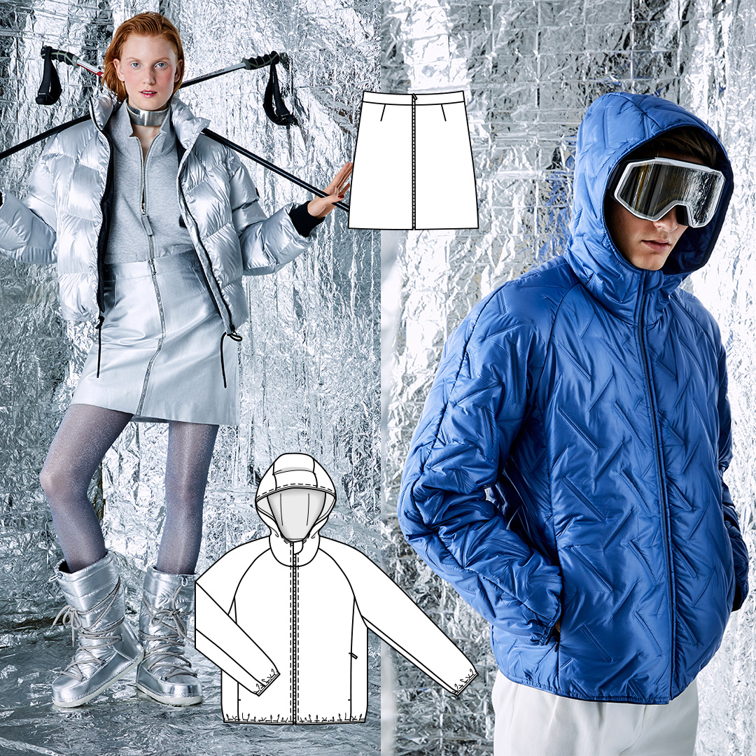 Футуристична зимова мода для жінок і чоловіків робить ставку на вишукані базові речі в золотому, срібному та бежевому кольорах – ідеальний симбіоз функціональності та стилю для модних образів просто неба.