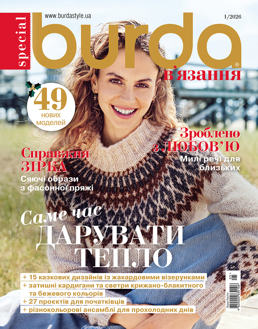 Від усього серця бажаємо вам задоволення від вашої творчості та зичимо всього найкращого вам та вашим близьким у новому році! Запитуйте новий спецвипуск «BURDA. В’язання» у точках продажу з 5 грудня або замовляйте журнал на сайті, заповнивши спеціальну форму.