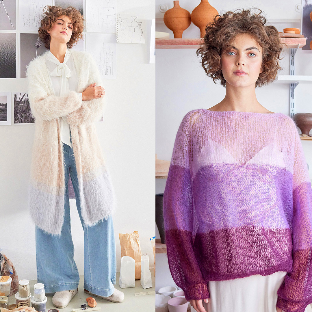 Легкі, розкішні, пухнасті пуловери і кардигани у ніжних пастельних та фіолетових відтінках - ці моделі просто райські!