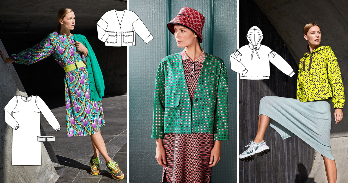 В модном авангарде моды спортивно-элегантные образы с графичными принтами. Даже жакет в духе ретро выглядит актуально благодаря деталям: рукавам с углубленной проймой и большим накладным карманам с клапанами. Блузону мы добавили женственности и модного объема сборками по верхним срезам полочки, спинки и рукавов.